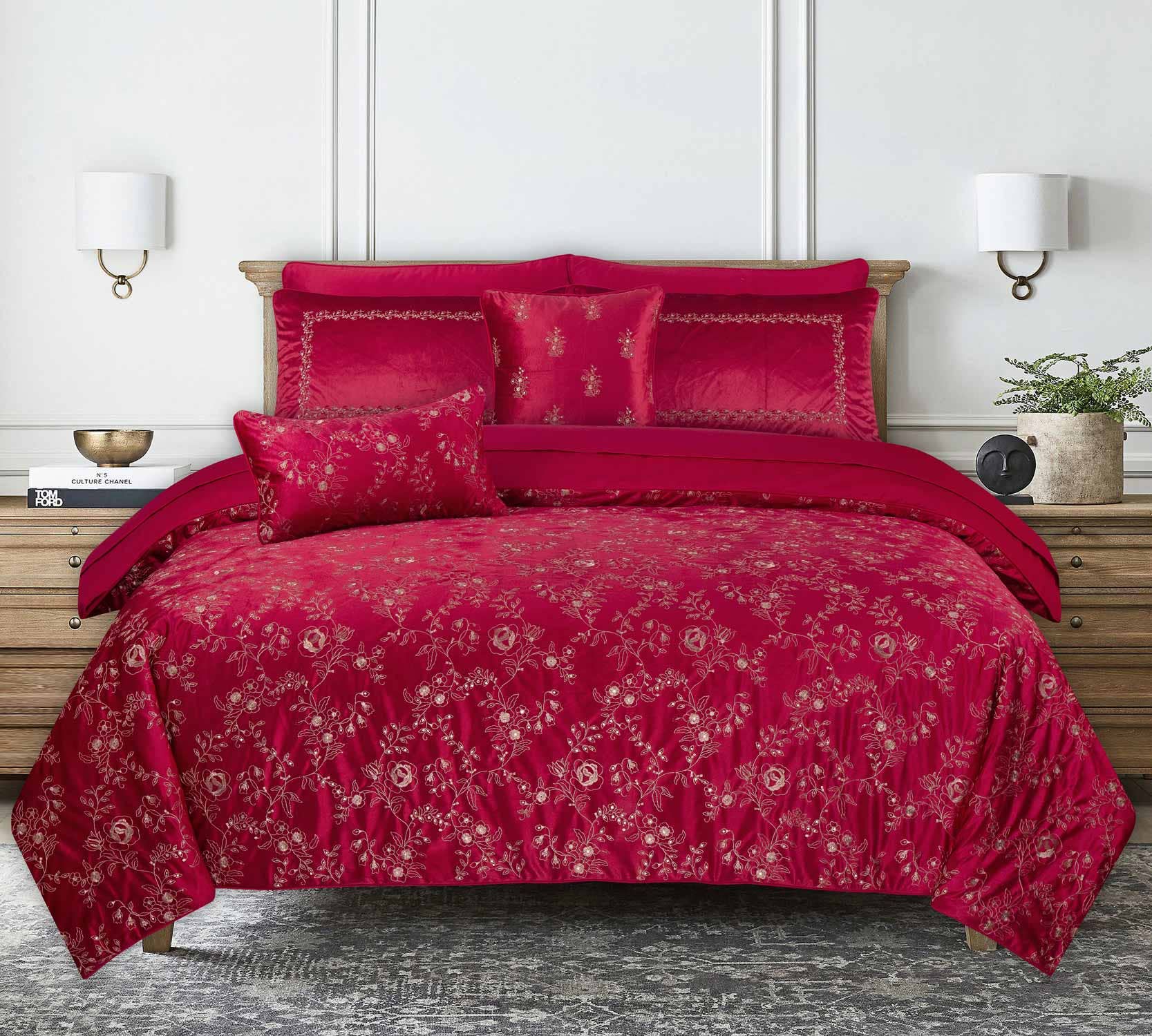 This series of Embroidered bridal bedding features Velvet fabric, with a soft feel. This work of art is made to unparalleled perfection.
