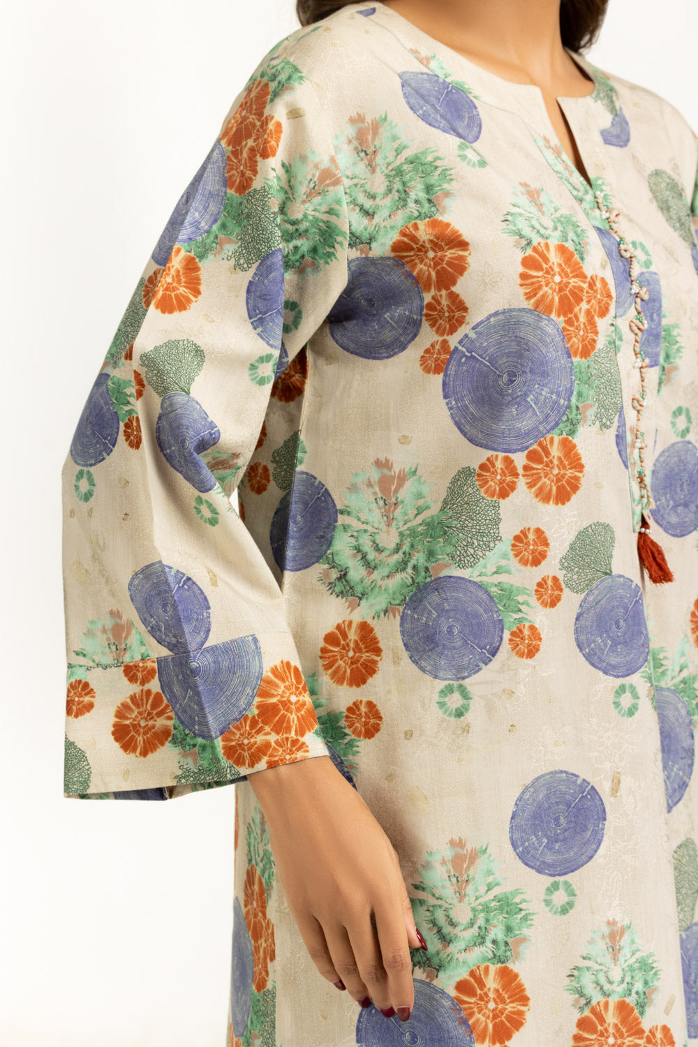 Details: Printed Co-ord Set featuring a Round-Neckline and delicate Embellishment.