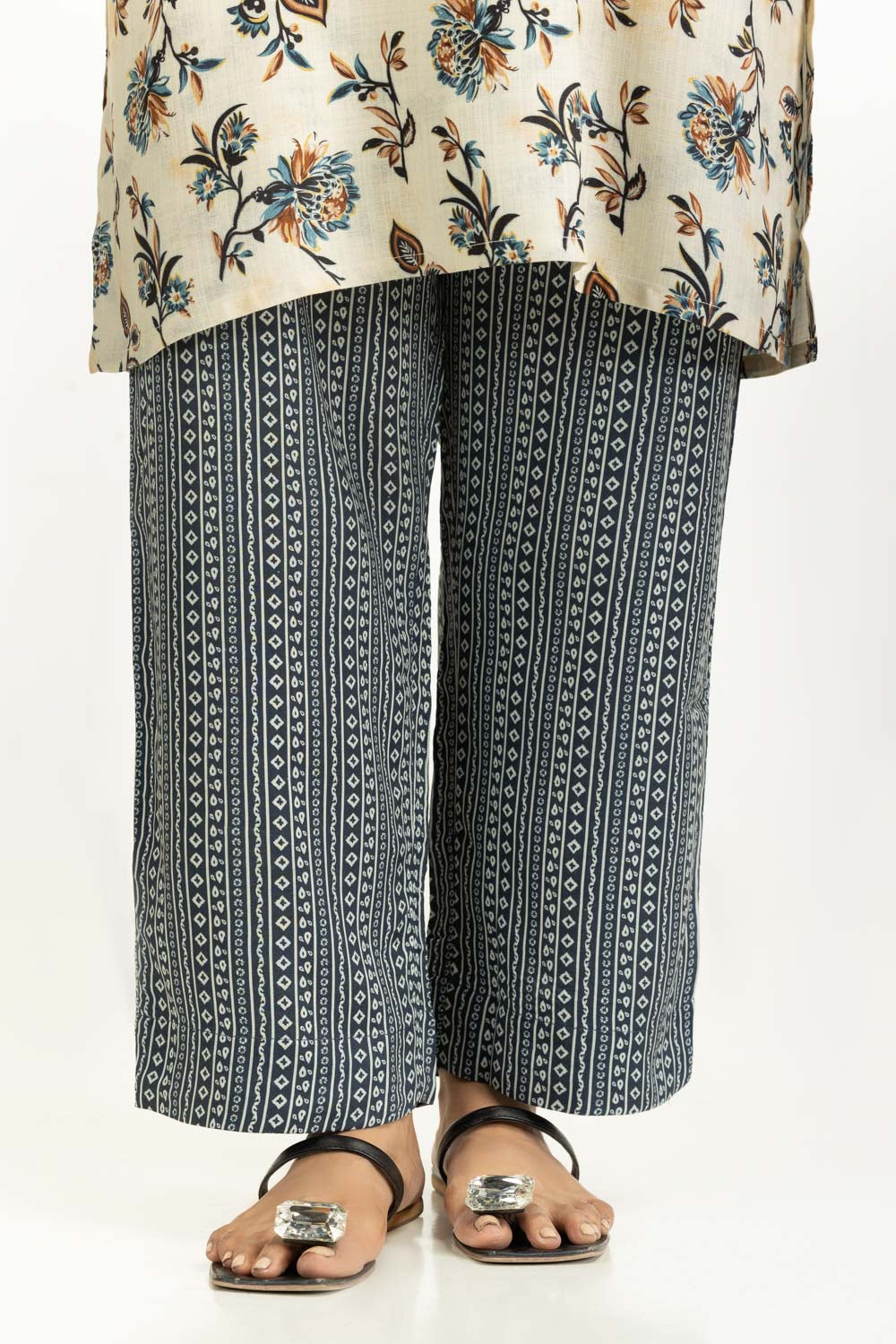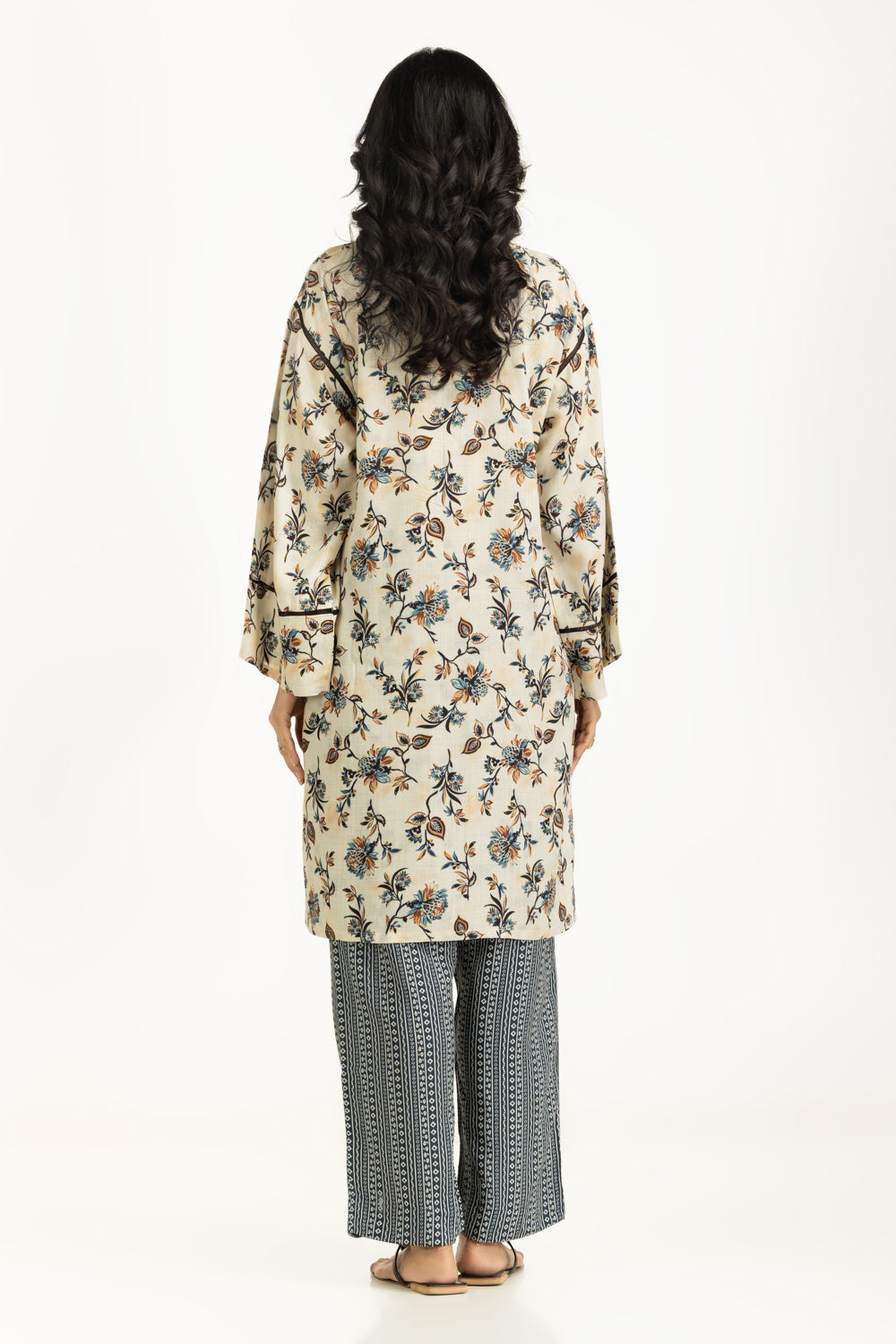 A calm beige hue highlights the beautiful floral print with a contemporary touch. The co-ord set, brings softness to your winter wardrobes with its lightweight viscose fabric, tailored in a loose fit exuding easy, unrestrictive movement all day long.