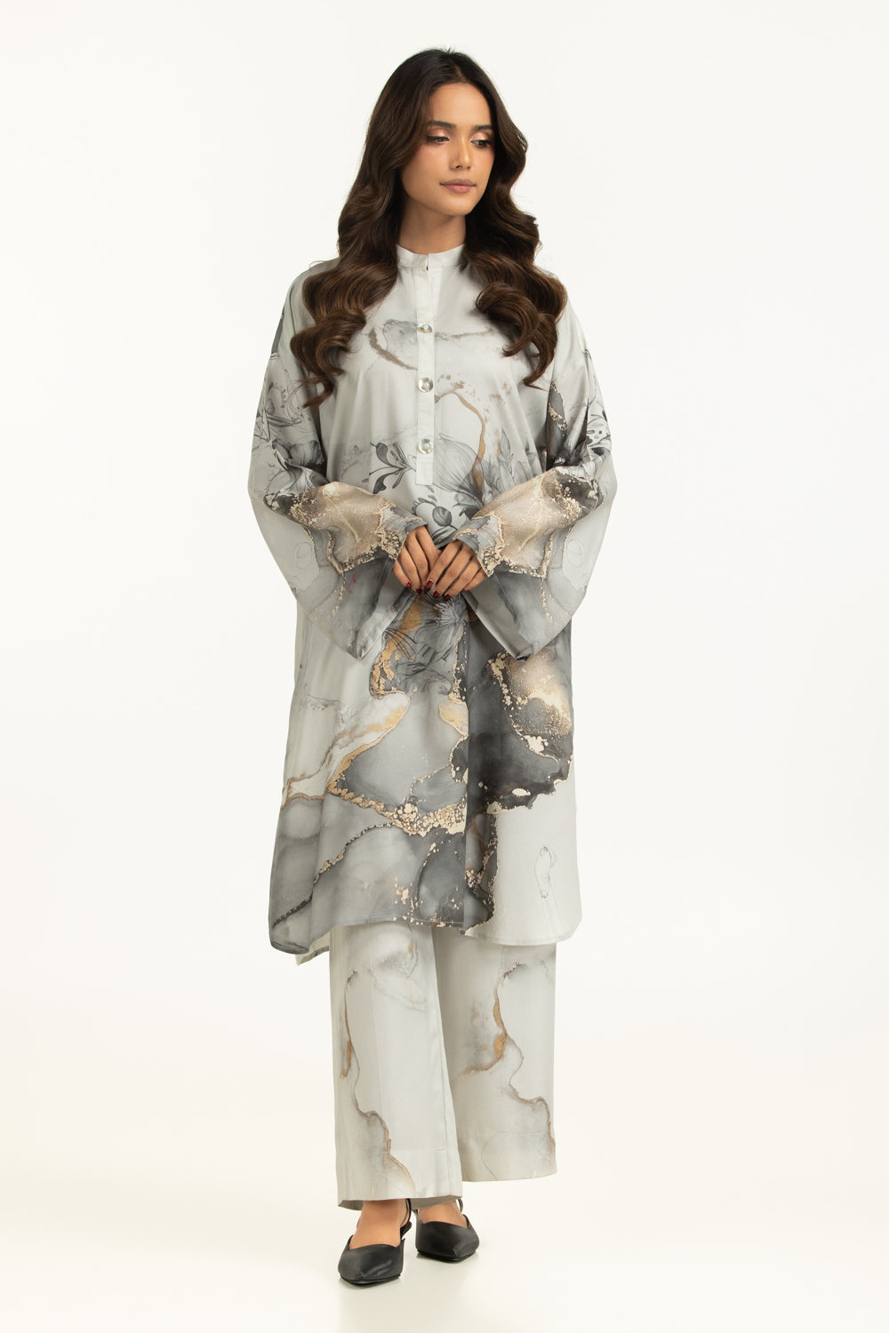 Subtle and chic, this printed co-ord in a soothing grey hue, speaks of modern minimalism. The viscose fabric brings a soft fall, while the loose fit keeps it easy through busy winter days. Perfect for women who love comfort with contemporary style.