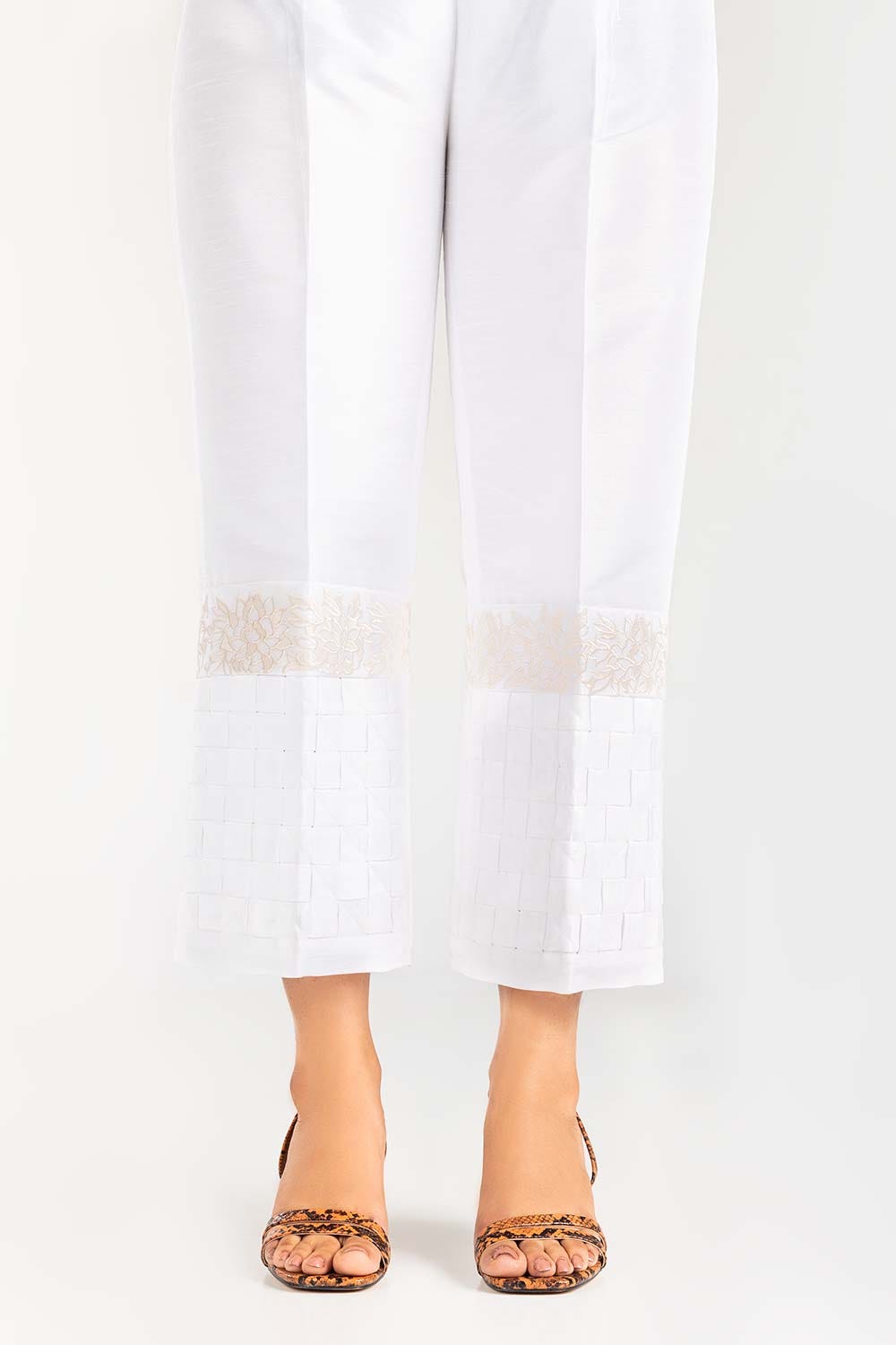 Ready to wear Solid dyed raw silk trousers with embroidered bottom border. Perfect addition to your eastern wardrobe.