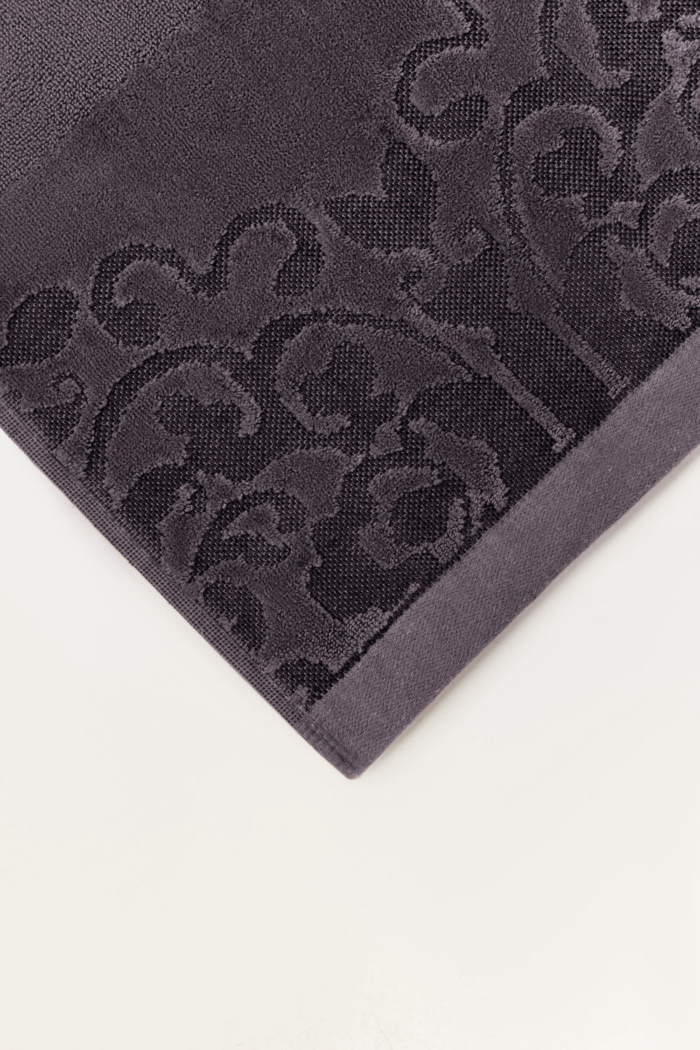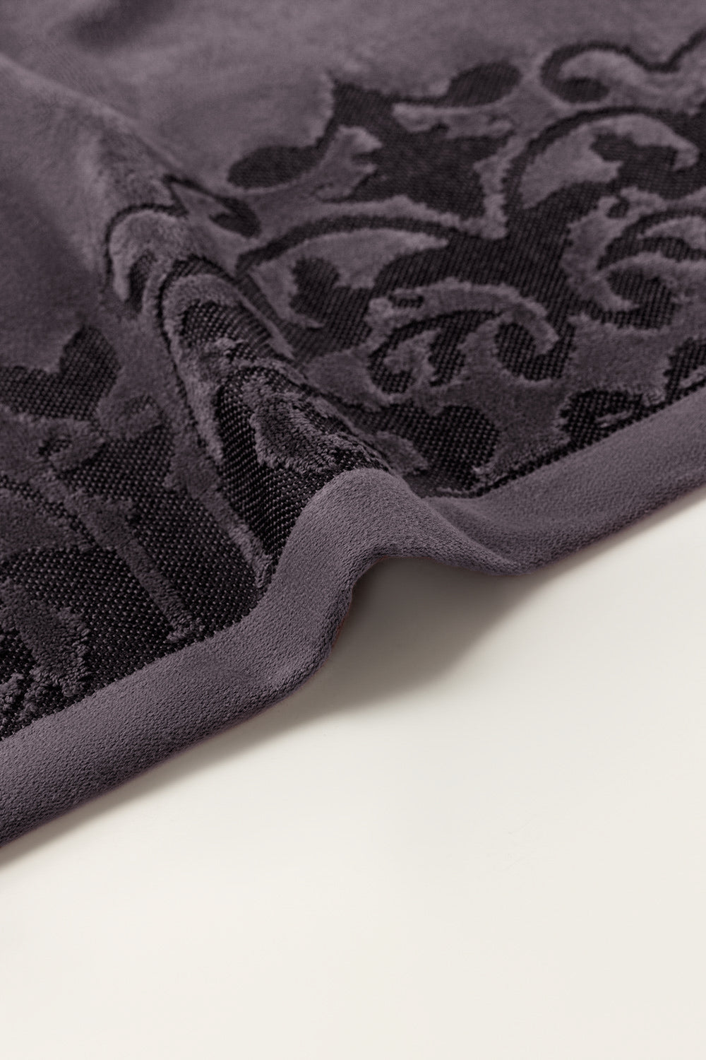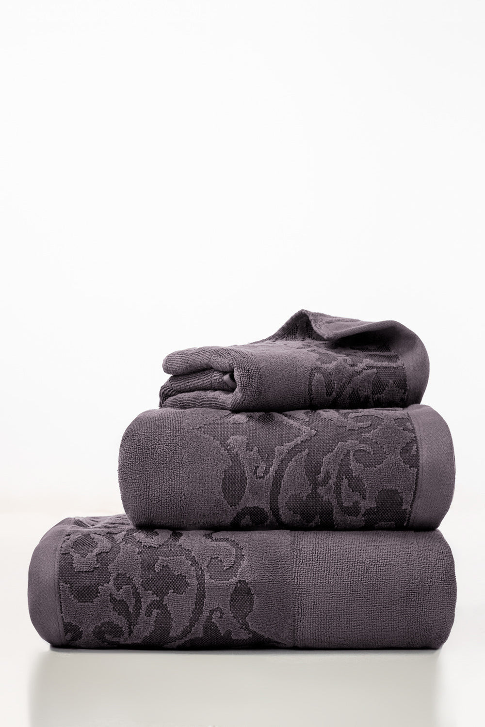 Jacquard towels are yarn-dyed terry towels woven on a special hook with an attachment allowing patterns to be woven into the terry pile. Jacquard weaves also have different heights of terry loop and intricate color designs. A jacquard design will appear on both the back and face of the towel.