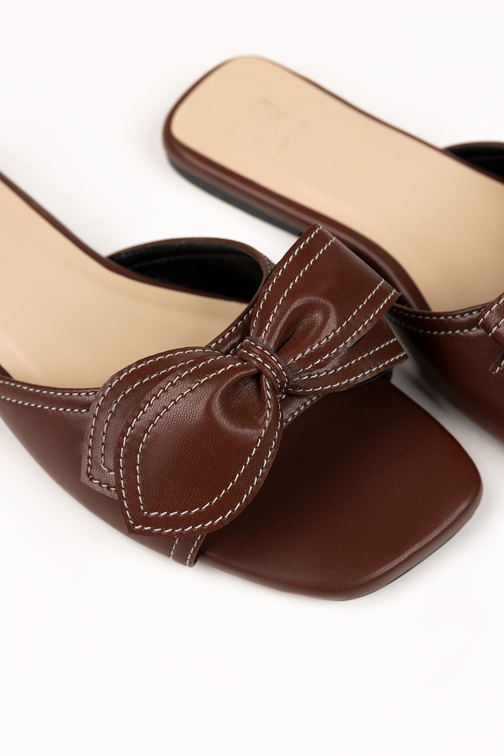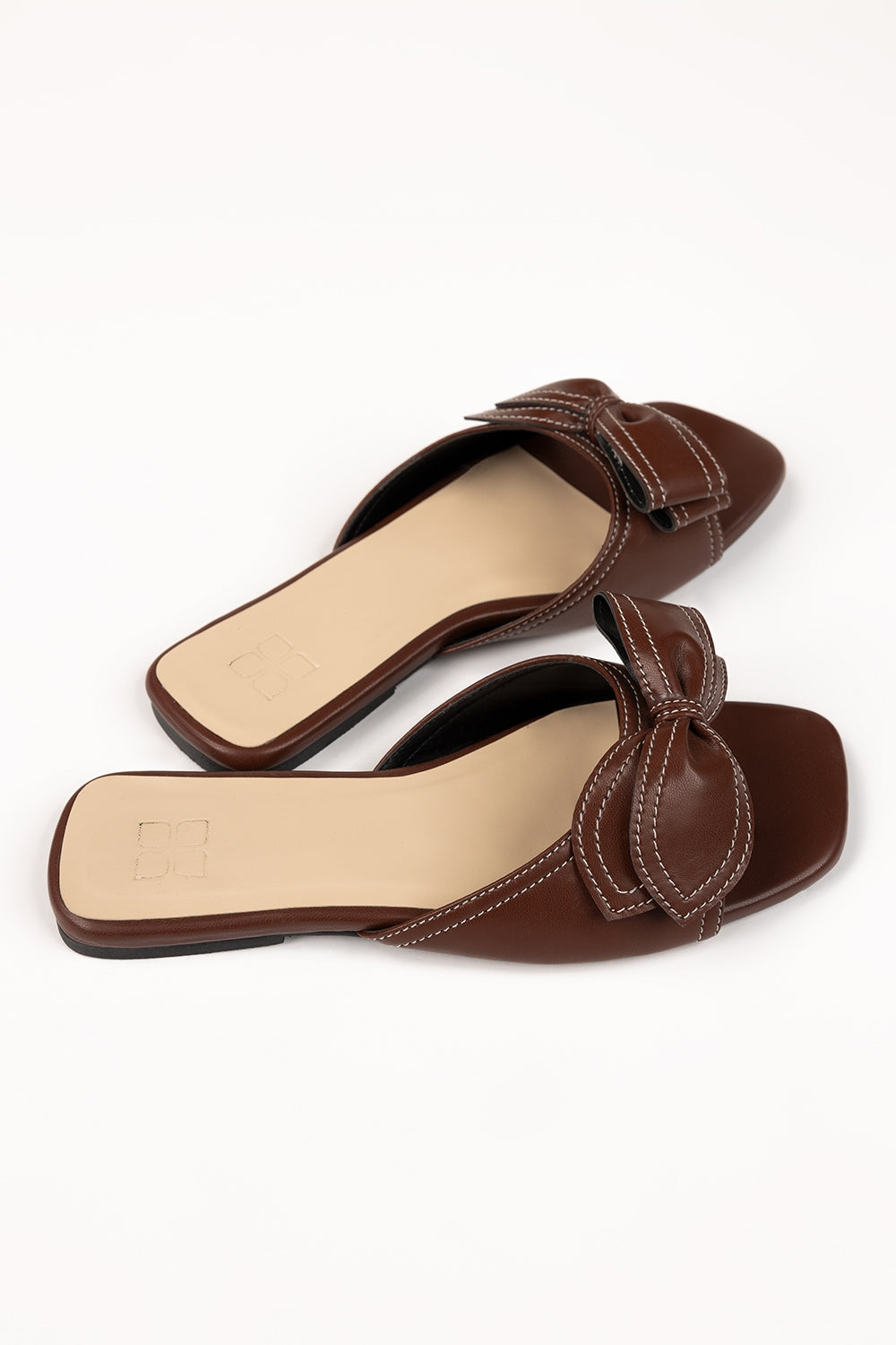 Product Description: Stylish Chic brown slippers with a stylish bow, perfect for everyday summer wear. Lightweight, comfortable, and effortlessly elegant