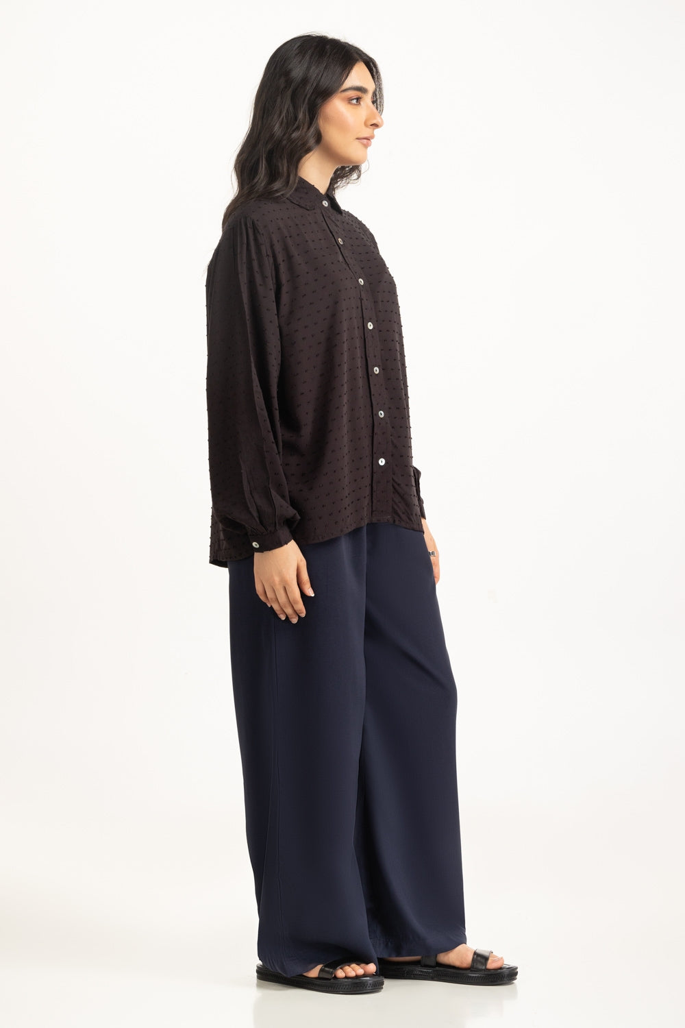 The unique texture gives this regular fit shirt a visual lift, making it more than just another basic. Breathable and lightweight, it transitions effortlessly from sunny afternoons to cool evenings.