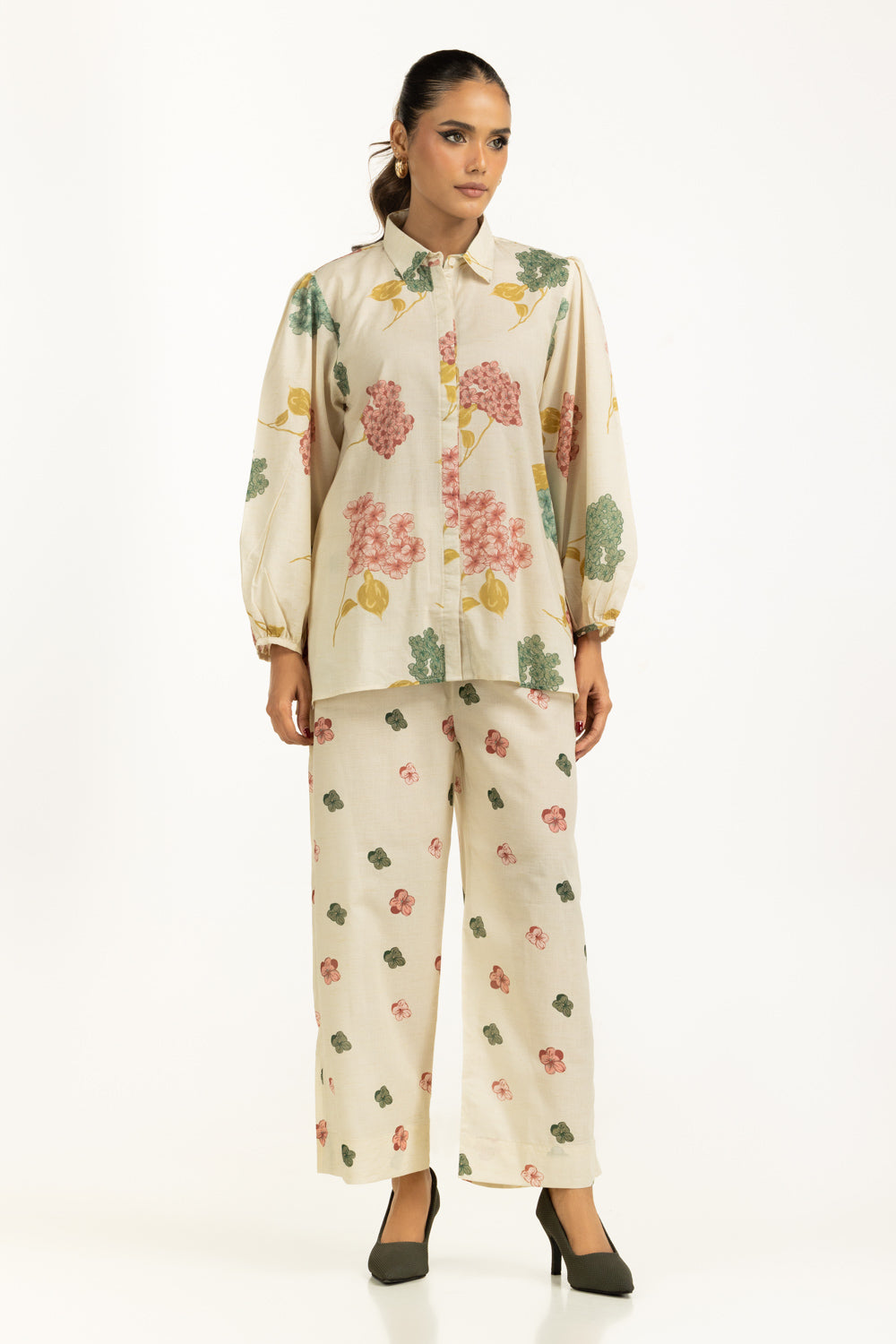 Details: Printed Co-ord Set featuring Shirt-Collar and Balloon Sleeves.