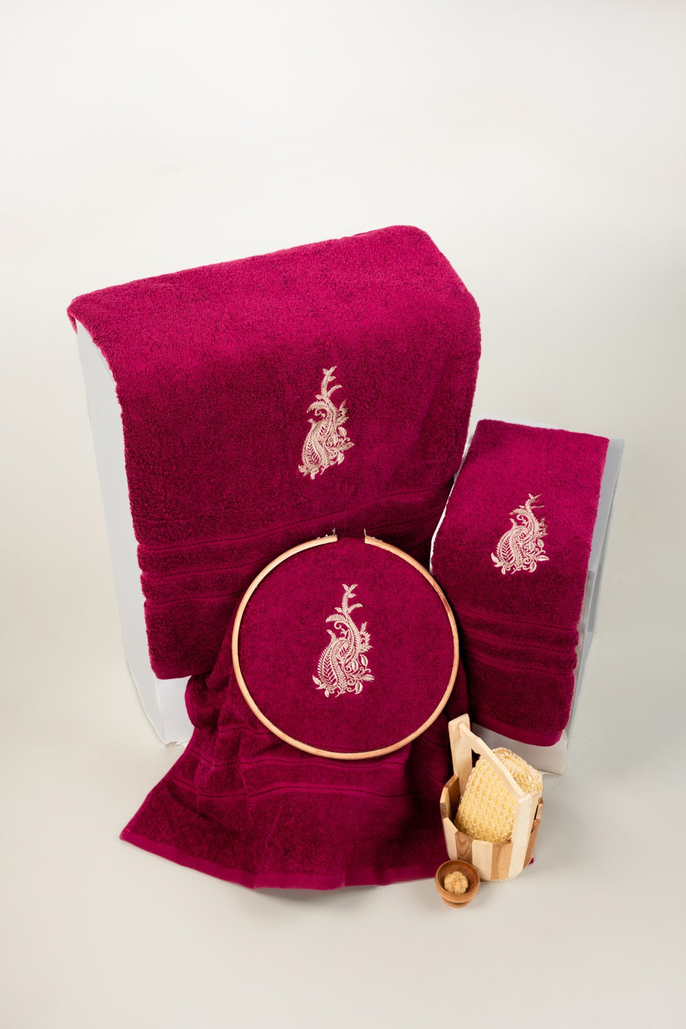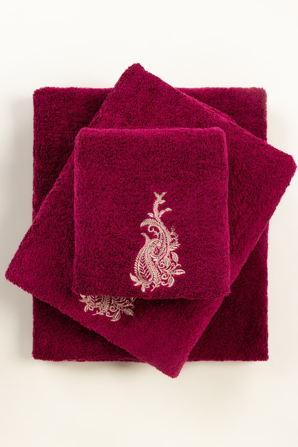 Raspberry Combed 3Pc Embroidered towel set