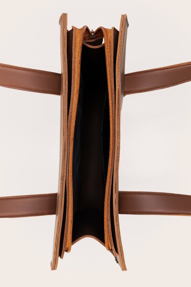 Upgrade your everyday look with a stylish, must-have accessory: the tote bag! This Tan tote is all you need!