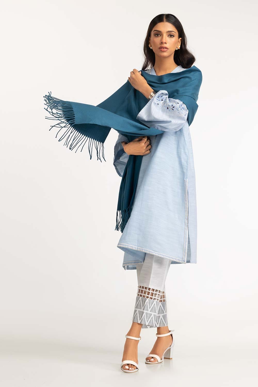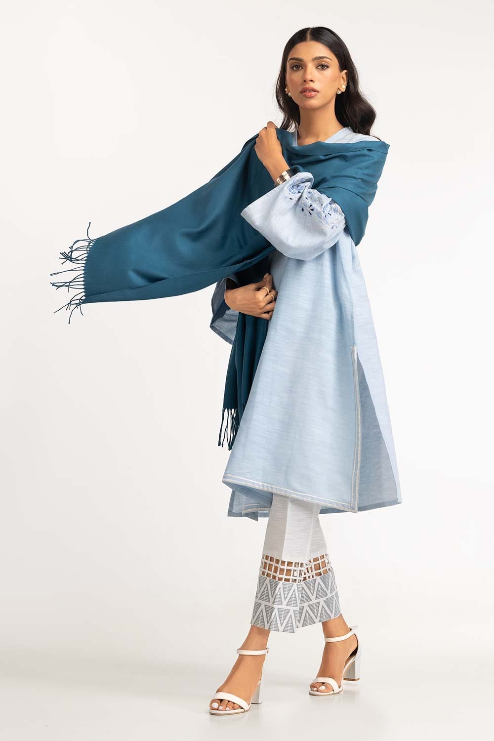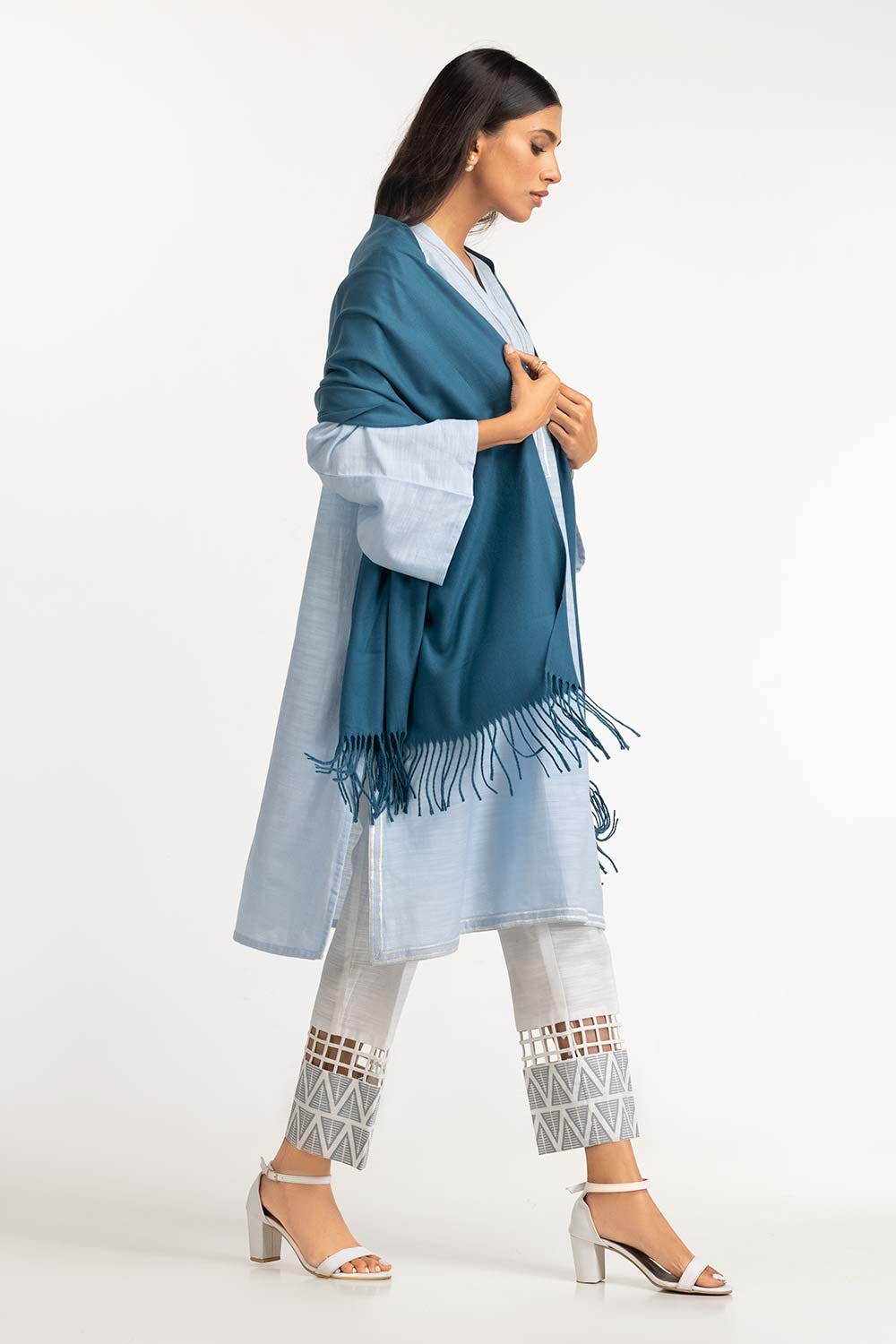 Ready to wear Dive into a world of style with our teal poly viscose scarf, a versatile accessory that effortlessly elevates your look, whether worn as a statement piece or a chic accent.