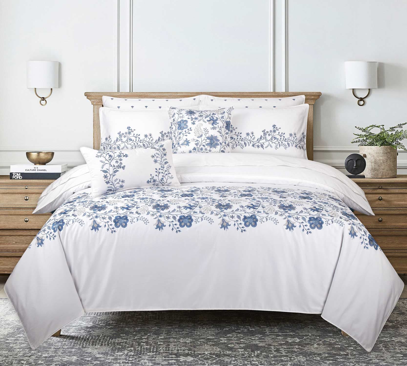 Indulgently soft, sateen weave bedding feels almost heavenly with 100% cotton. Our signature embroidered duvet cover set, offers a classic aesthetic appeal to match any style of décor. Available in luxurious colors and extravagantly soft and comfortable embroidered series.