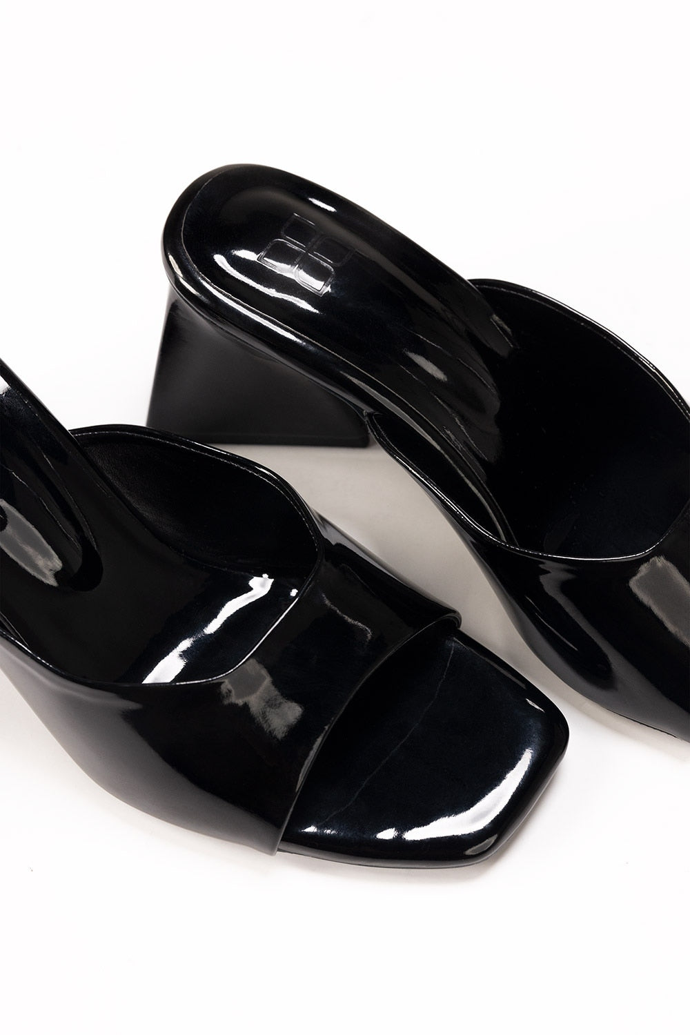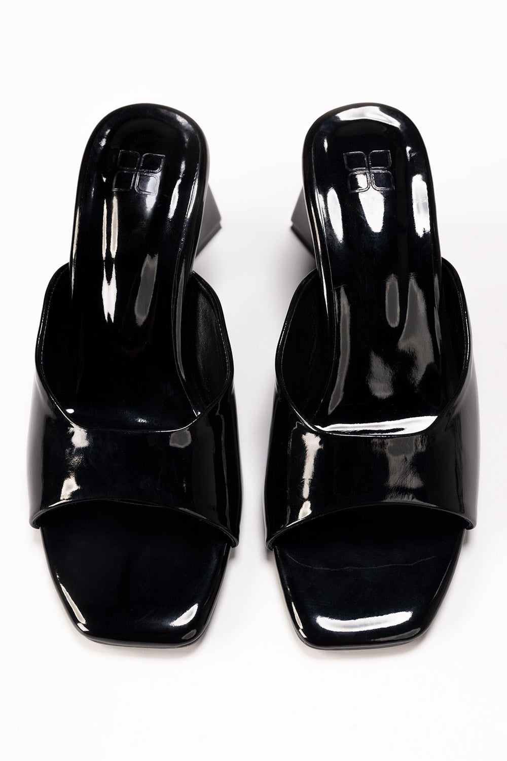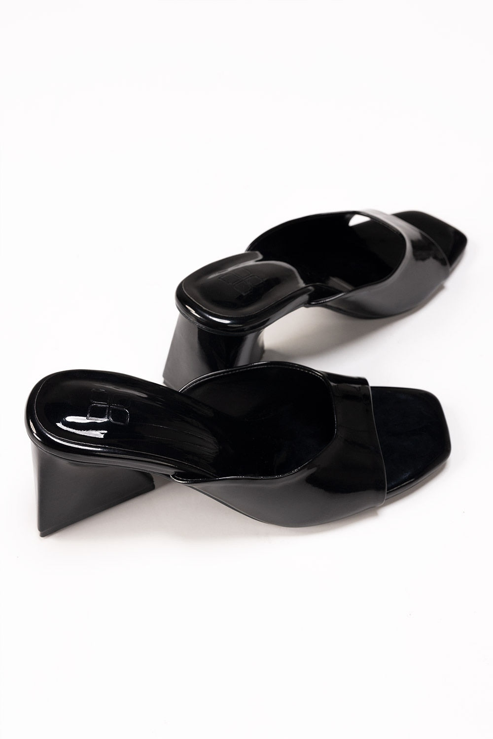 • Elegant and comfortable, featuring a subtle pattern on premium black material with a sturdy block heel for all-day wear.